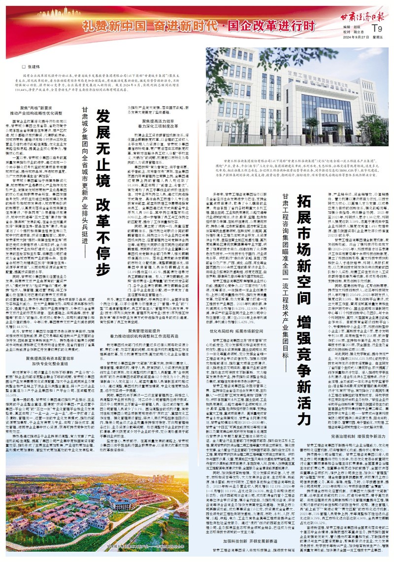 奋进新征程,开云网页版页面登录将全面贯彻落实党的二十届三中全会精神,准确把握改革重点任务,持续推动国有企业做强做优做大,着力提升改革质量和效能,不断推进党的建设与生产经营深度融合,聚焦勘察设计主业,大力发展绿色技术、数字技术等新兴产业,加快培育新质生产力,增强高质量发展动能,加快建设全国一流工程技术产业集团。