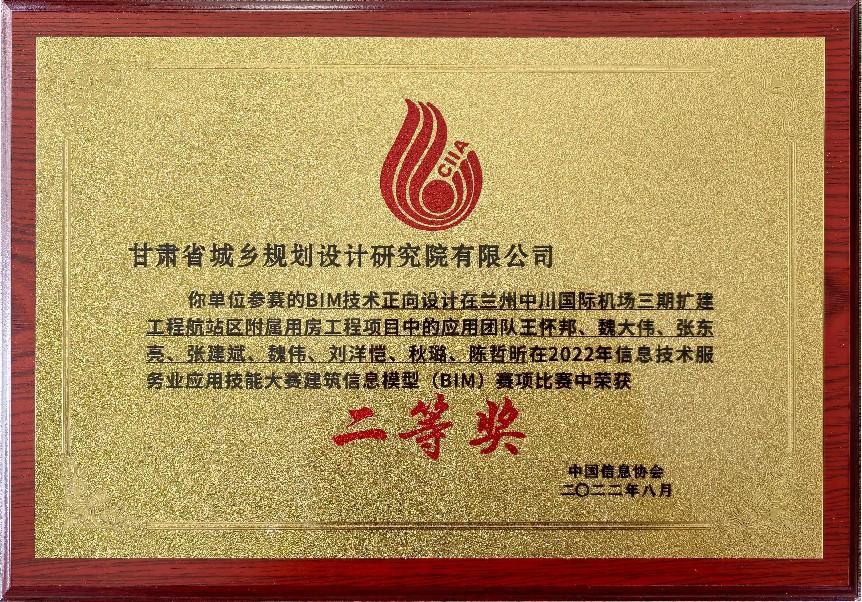 近日,甘肃省城乡规划设计研究院有限公司“BIM技术正向设计在兰州中川国际机场三期扩建工程航站区附属用房工程项目的应用”荣获中国信息协会2022年信息技术服务业应用技能大赛二等奖。此次获奖是继该BIM应用项目荣获2021年甘肃省第四届BIM技术应用大赛设计组一等奖之后,再次摘得的国家奖项,也是规划设计院首次在国家级BIM技术应用赛事中获奖。
